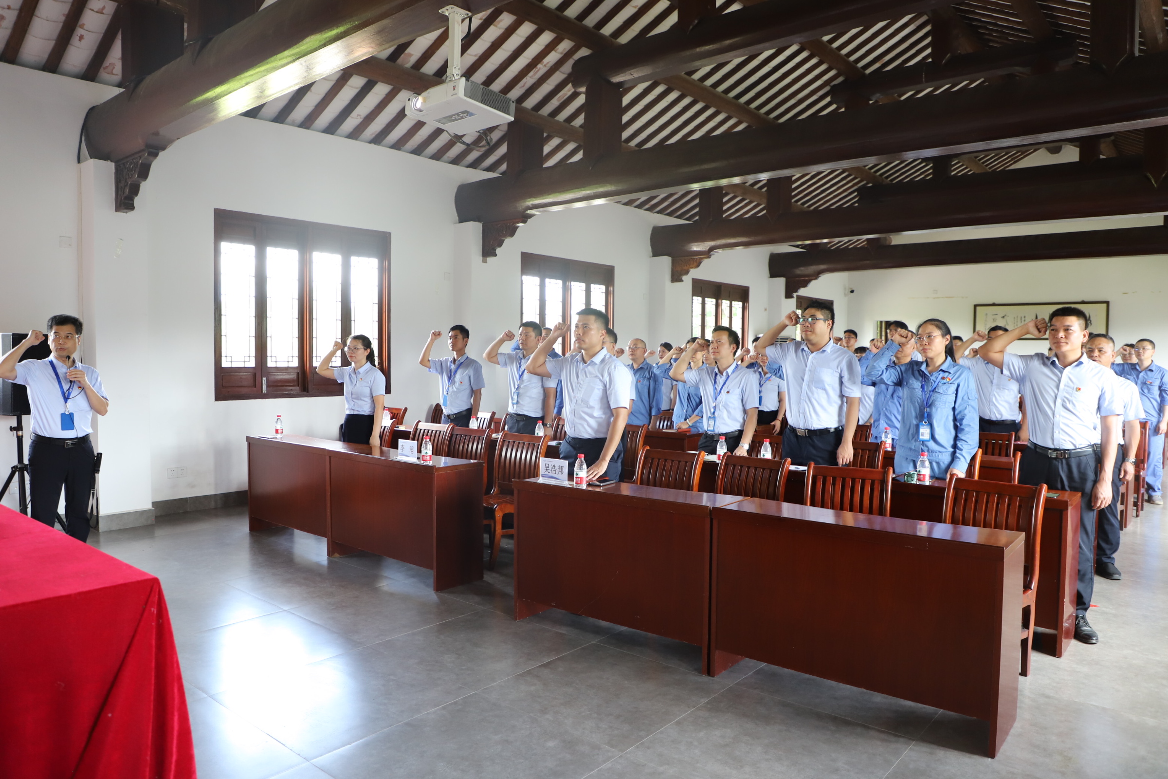 6月28日,集團(tuán)黨委組織黨員干部在冼太故里廉潔講堂重溫入黨誓詞,集團(tuán)黨委委員、總裁李滔領(lǐng)誓,黨員干部舉起右拳,莊嚴(yán)宣誓,重溫了入黨時(shí)對(duì)黨作出的莊嚴(yán)承諾。通過(guò)重溫入黨誓詞,使黨員干部在潛移默化中自覺(jué)增強(qiáng)“守初心、擔(dān)使命”的思想意識(shí)和行動(dòng)意識(shí),在各自崗位上實(shí)現(xiàn)自身價(jià)值。