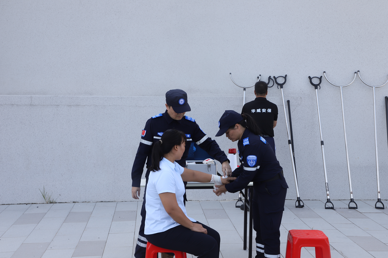 安保人員隨后對(duì)模擬‘傷員’實(shí)施了規(guī)范的院前急救處理。